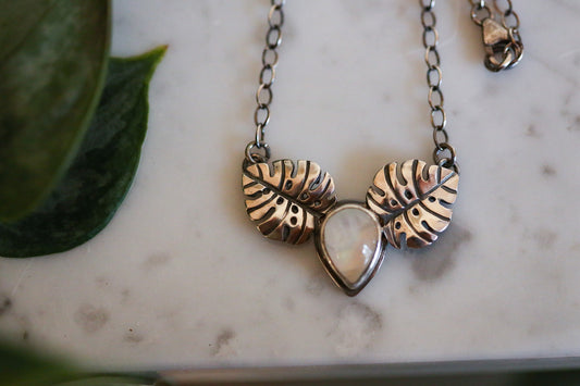 Moonstone Monstera Necklace