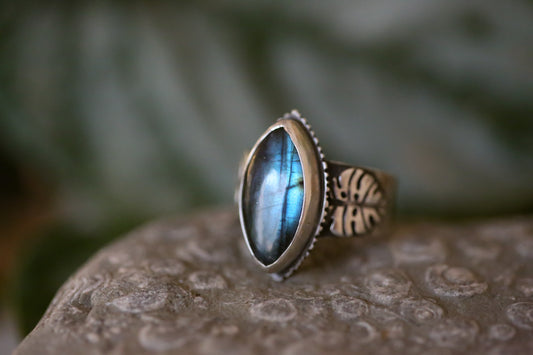 Monstera + Labradorite Ring Size 9.25