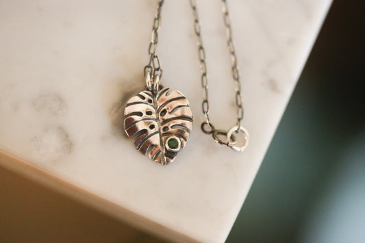 Emerald Monstera Necklace