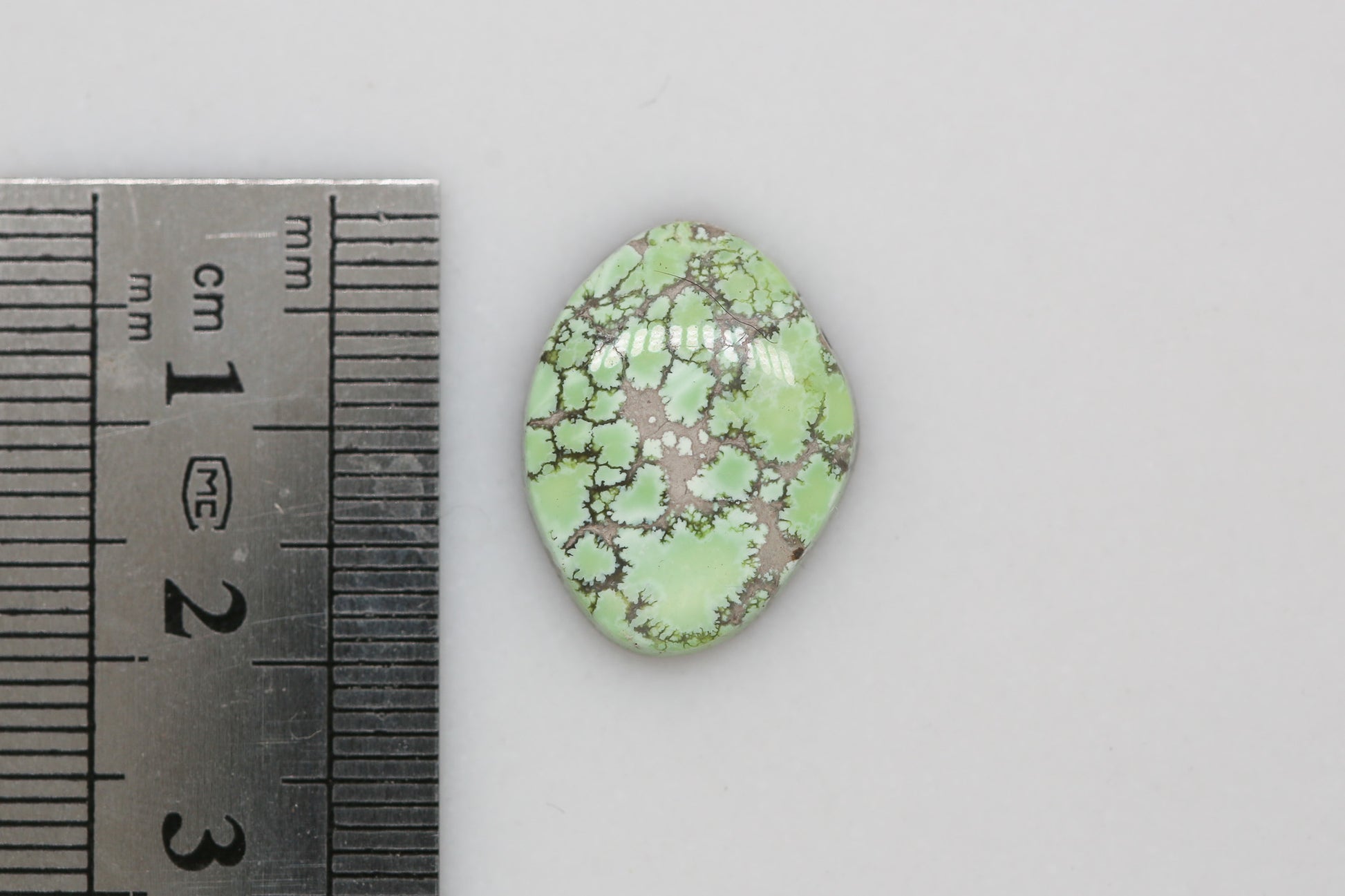 7.5 carat natural rare webbed lime green Carico Lake turquoise cabochon. Approximately 18.5x14x4mm. Backed for support. $20/carat