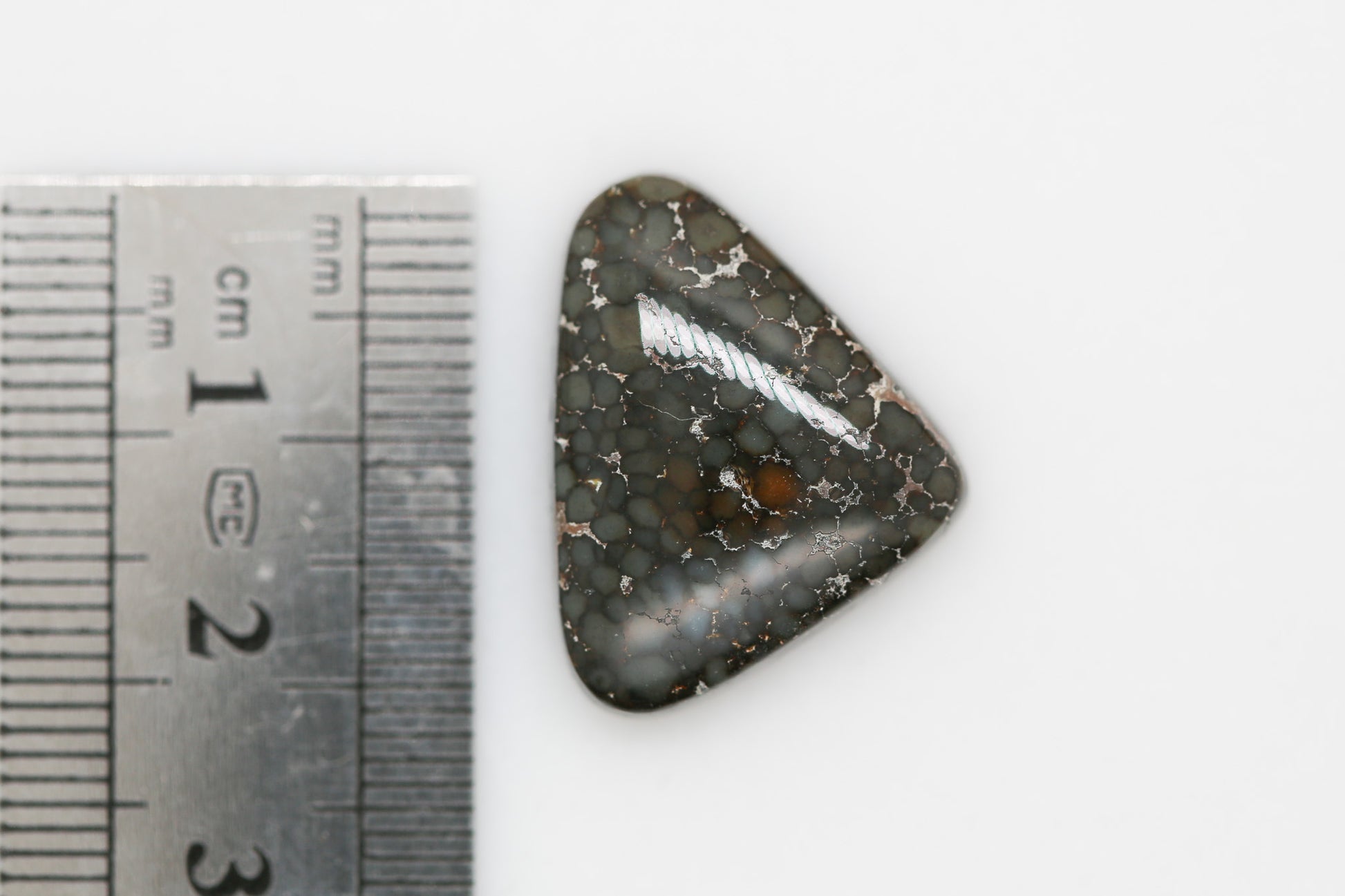 16 carat natural rare multicolored (dark gray blue with orange) Damele turquoise cabochon. Approximately 17x22x6.5mm. Backed for support. $15/carat